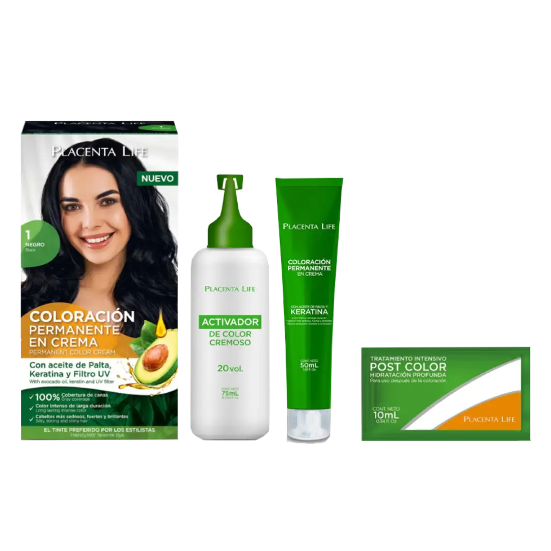 Kit Placenta Life Coloración Permanente en crema – 1 Negro
